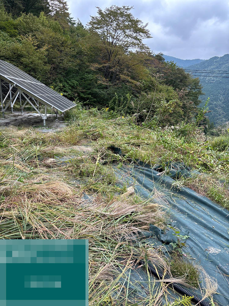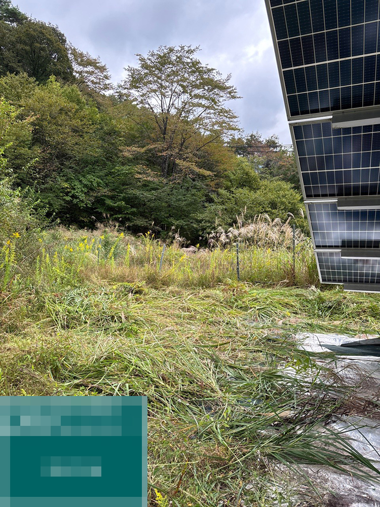 岐阜県加茂郡の109.89kWシステムの発電所にて、草刈りを行いました。